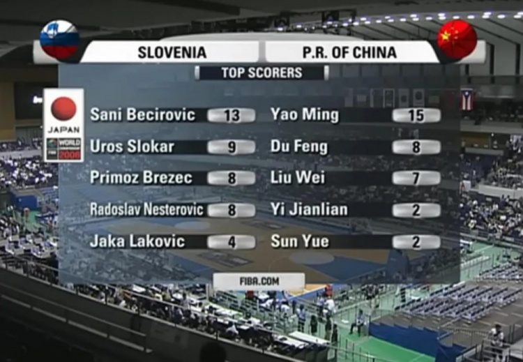 而原因也不难猜,前面说了,斯洛文尼亚有6个场均10分左右的球员,但没有一个超过13.8分,缺少一个像姚明这样的万能开罐器,而且,斯洛文尼亚6人之外的轮换实力断档,和中国拼了半场投抢,属于拿体能换领先。遇到擅长拖阵地打烂仗的中国队(我有姚明你有吗),被追上也不算意外。
