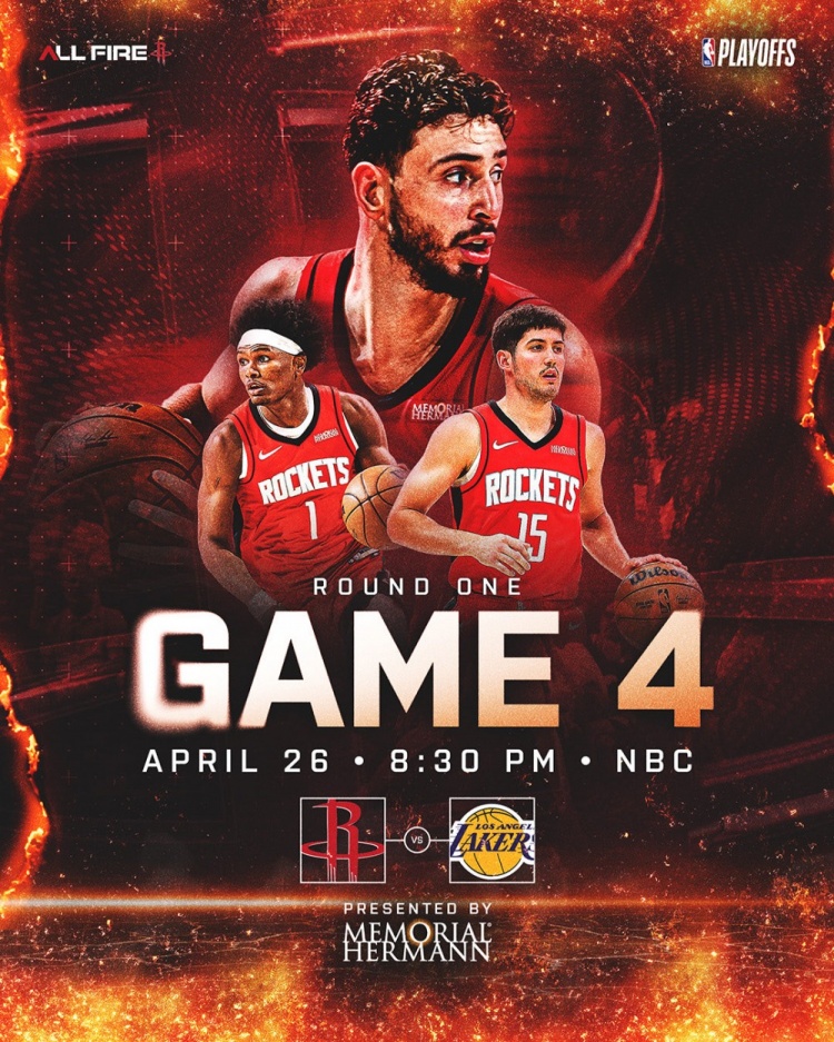 KD会上吗?火箭官推发海报预热G4:封面为申京、阿门和谢泼德 4月26日讯 明天上午9点半,火箭和湖人的系列赛G4将在丰田中心继续开战。火箭官方发布预热海报,封面为申京、阿门和谢泼德。目前火箭0-3... nba 2026.04.29 0 26